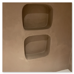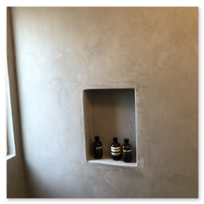 Unlike tile, microcement showers are created by hand. The spatula technique defines the surface, as the pressure applied creates the highs and lows that give microcement its unique burnish.