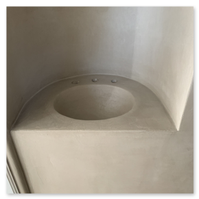 - 4–5 layers of premium microcement – applied with precision for strength and depth.